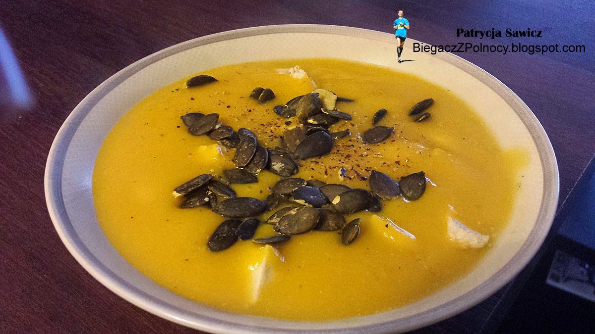 Od razu przyznaję, że trochę przy tym przepisie eksperymentowaliśmy. Wykorzystując sobotni, wolny czas chcieliśmy razem z Pati coś ugotować. Pomysłów było co nie miara, ale ostatecznie wybór padł na krem z dyni. Jedyne co kupiliśmy do tego to... dynia. Uznaliśmy, że nie będziemy kupować rzeczy wg przepisu, tylko będziemy dopasowywać przepis do naszej lodówki. I to było dobre posunięcie, bo wyszło naprawdę smacznie. Być może jakieś kulinarne faux pas popełniliśmy, ale czy to ważne skoro nam smakowało? :)